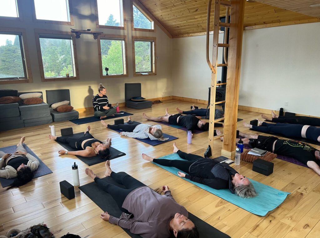 The jewel of our property is the Gathering Space, perfect for whatever your retreat requires. With a serene open space for group circles or classes, this space accommodates your needs with a beautiful view of the Rockies and plenty of sunshine showcased by a wall of windows.